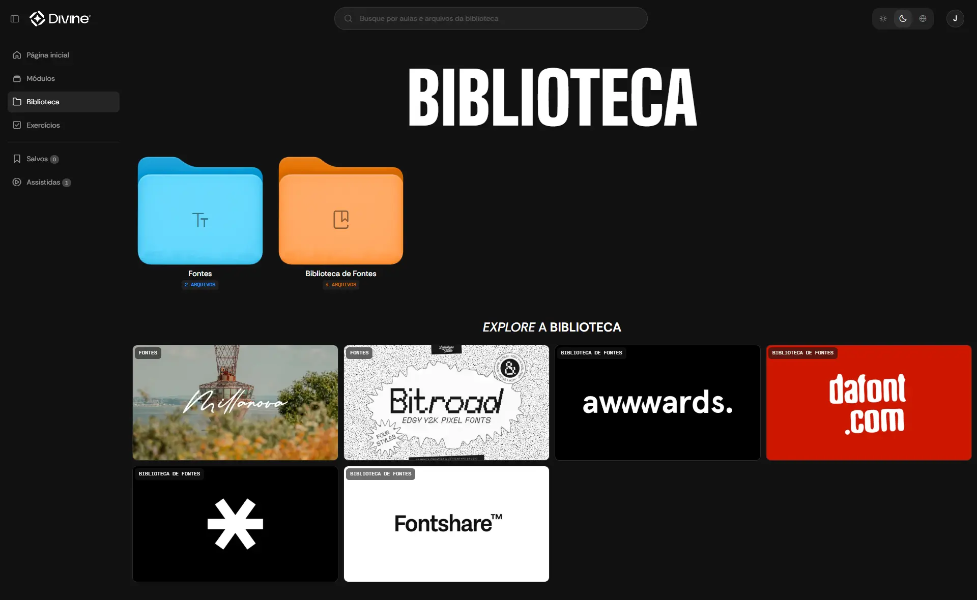 Biblioteca com +200 fontes premium para você já começar no estilo.